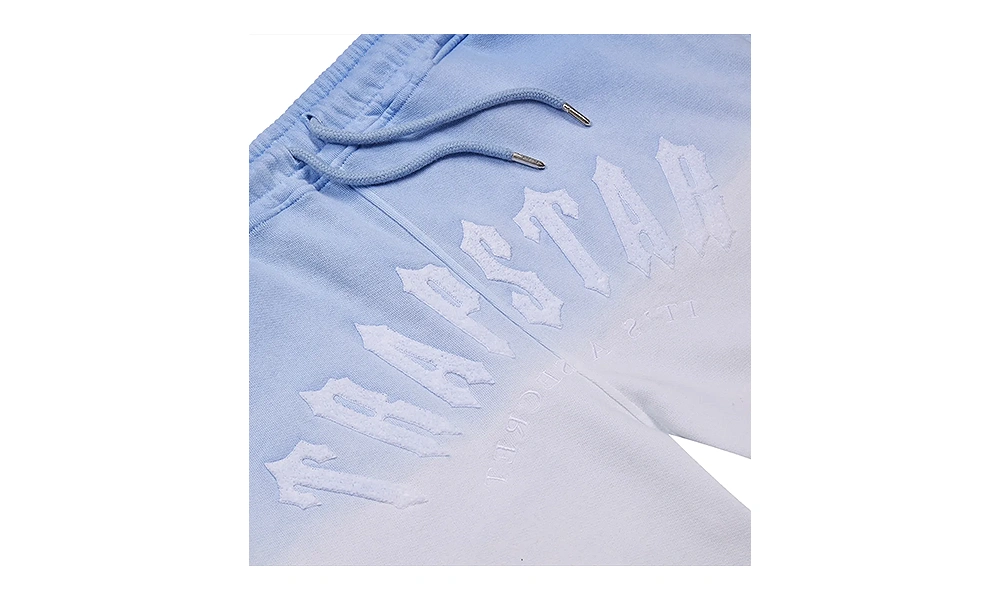 Komplet z krótkimi spodenkami Trapstar Arch Irongate Gradient Blue to idealne połączenie świeżego stylu, wygody i unikalnego wyglądu – propozycja dla tych, którzy cenią oryginalny i dopracowany streetwear.
